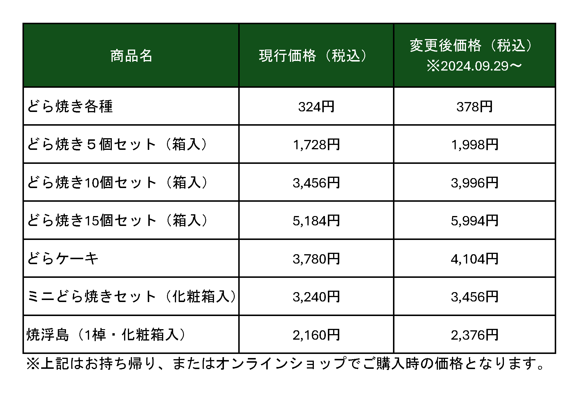 | 2024.09.28 | 価格改定のお知らせ 平素より、和菓子薫風をご利用いただき、厚く御礼申し上げます。 当店では開店以降、地域の方々に愛される和菓子店を目指し、価格改定を一度も行うことなく努力を続けて参りました。しかしこの度、原材料や電気代などの高騰により、現行価格でのご提供が困難となりました。 ご利用いただいている皆様には大変ご迷惑をお掛けいたしますが、2024年9月29日より一部商品の価格を改定させていただきます。 今後も美味しく新しい和菓子作りに精進してまいります。 ご理解いただけますようよろしくお願い申しあげます。 和菓子薫風 店主 つくださちこ 価格改定一覧(クリックで拡大) |